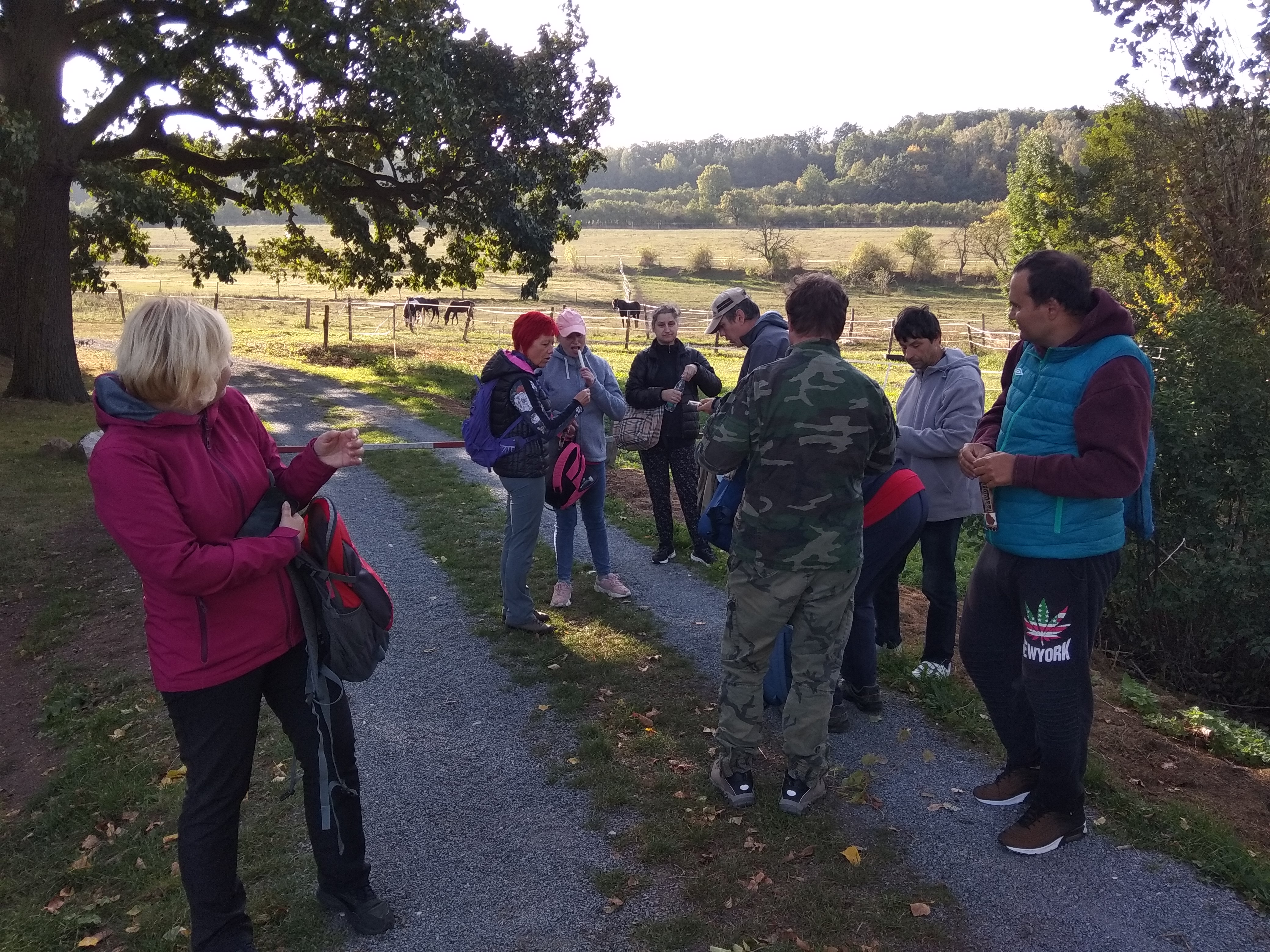 Pokračovali jsme cestou k Želkovicům, za kterými se zelenal les Housina. V Želkovicích jsme obdivovali nejprve malý rybníček s vodníkem a plot s hrnky na dušičky a za ním hezky upravenou chalupu a zahrádku, jakou známe z knih od malíře Josefa Lady. Pak jsme zastavili u Želkovického rybníka, kde jsme při malém občerstvení pozorovali pasoucí se koně.