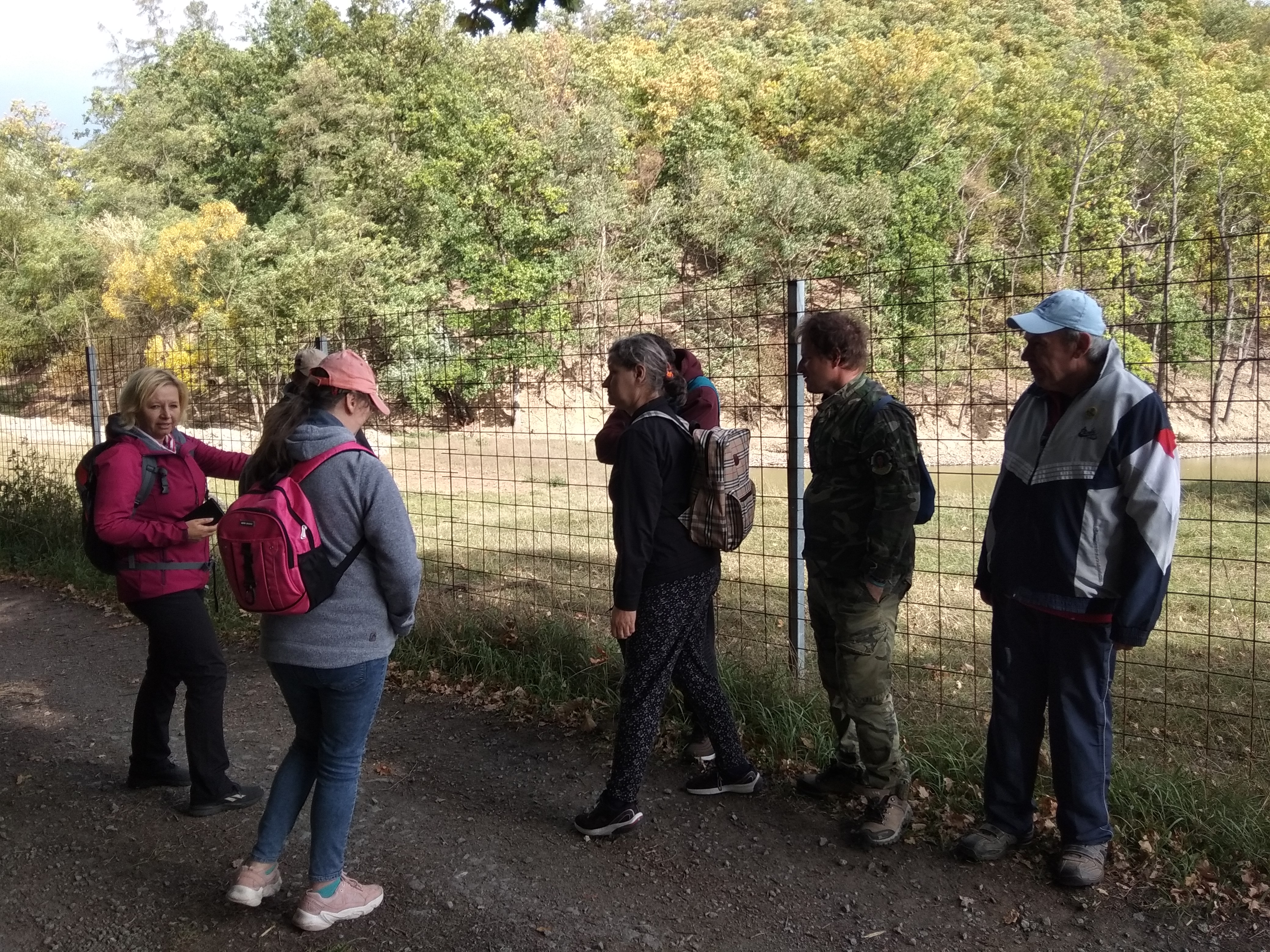 Cesta nám pokračovala po silnici dál na západ a za druhou zatáčkou už začínaly ohrady, kde jsme se těšili na stádo daňků, pštrosy a klokana. Dnes však bylo větrné počasí, tak se asi schovali do blízkého lesa. V dalších ohradách, které lemují silnici po obou stranách, se spokojeně pásli koně. Když jsme se blížili k obci Libomyšl, další zastávkou byl nenápadný kopec – tvrziště Hrádek. Na vrchol jsme si netroufli, výstup by byl obtížný přes vysokou trávu a keře. Po dvouhodinové chůzi jsme dosáhli cíle, neboť jsme se ocitli na návsi obce. Samozřejmě nám vyhládlo a cestou kolem řeky Litavky jsme doputovali k restauraci. Každý si objednal oběd dle své chuti, vynikající oběd zapil oblíbeným mokem a závěrečnou tečkou byla káva.
