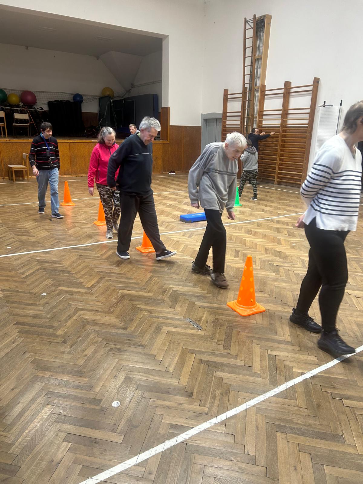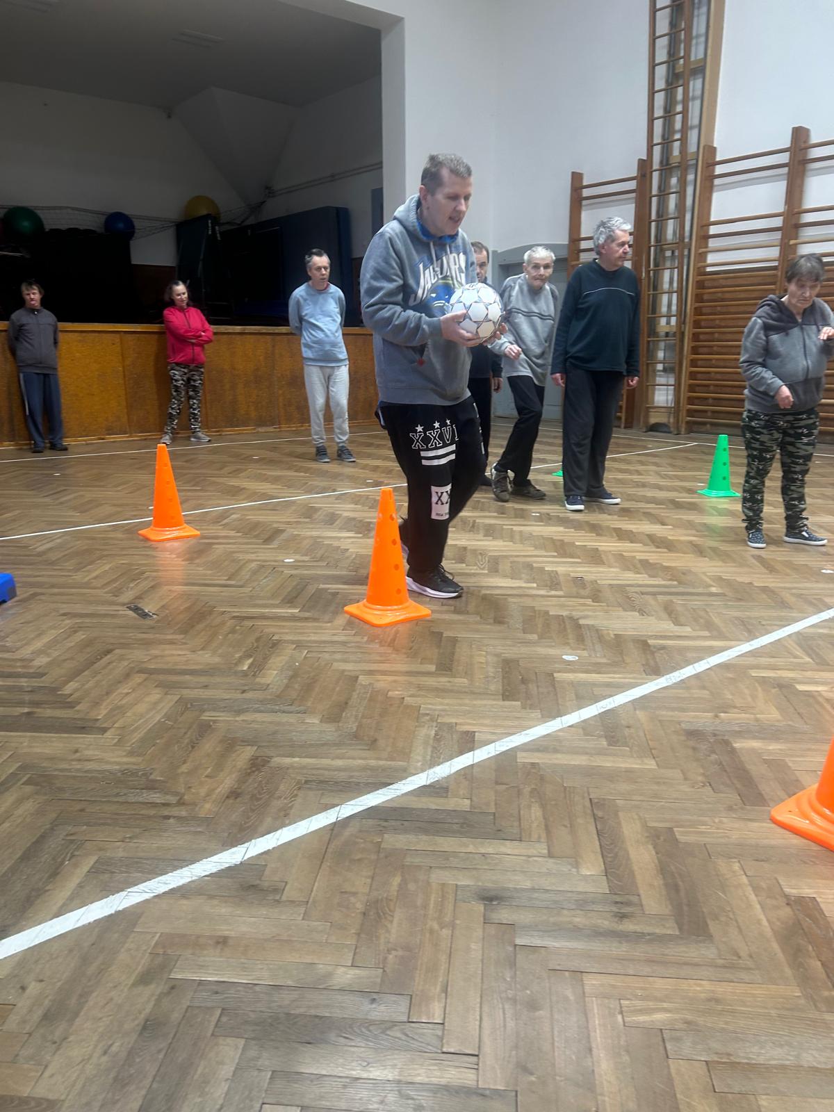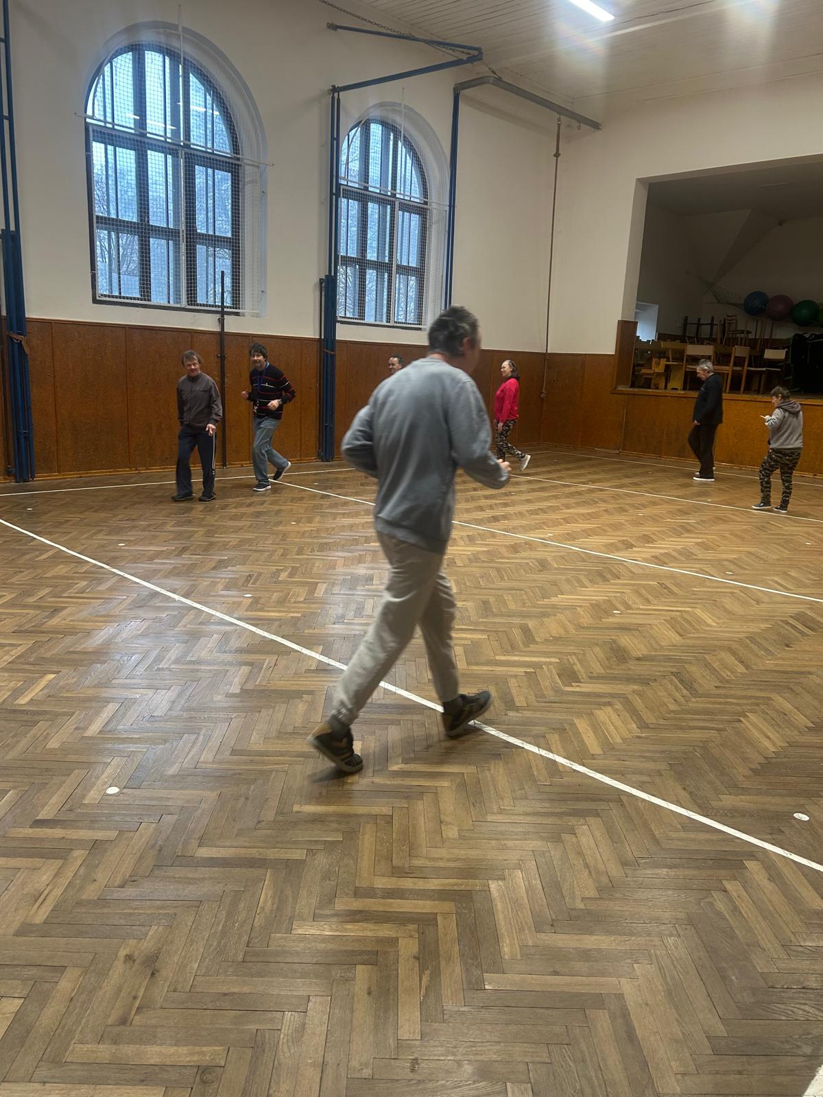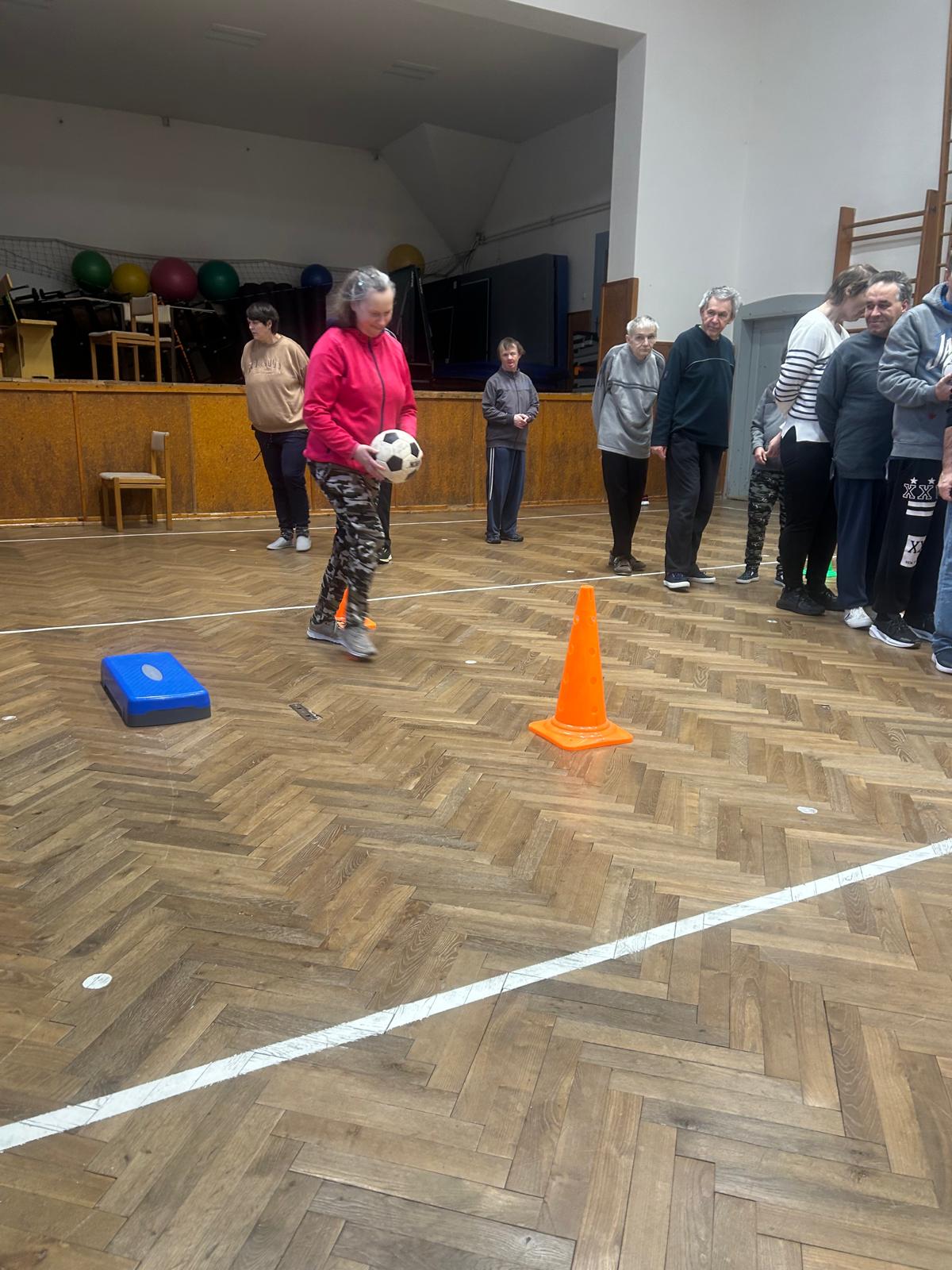 Pohybové hry v suchomastském Sokole pod vedením našich paní pečovatelek.