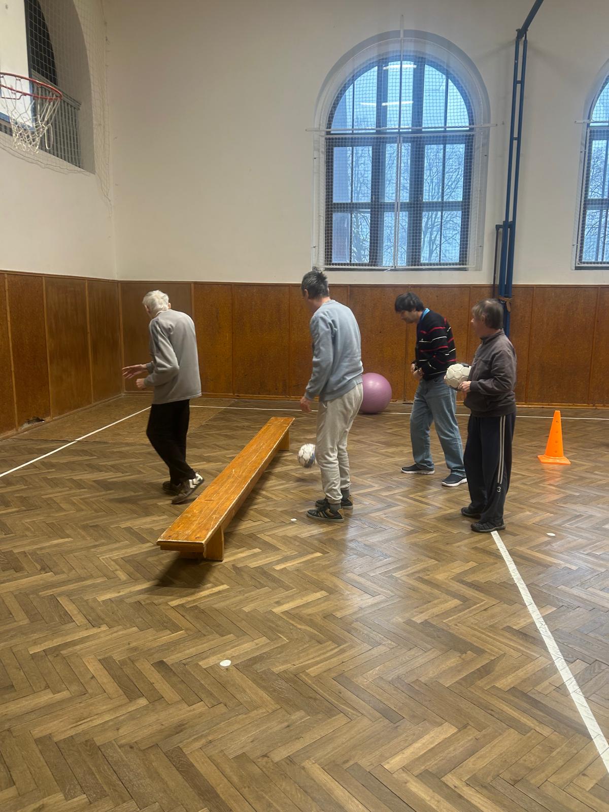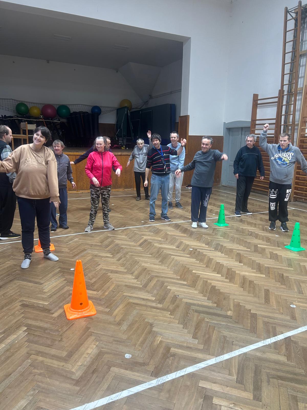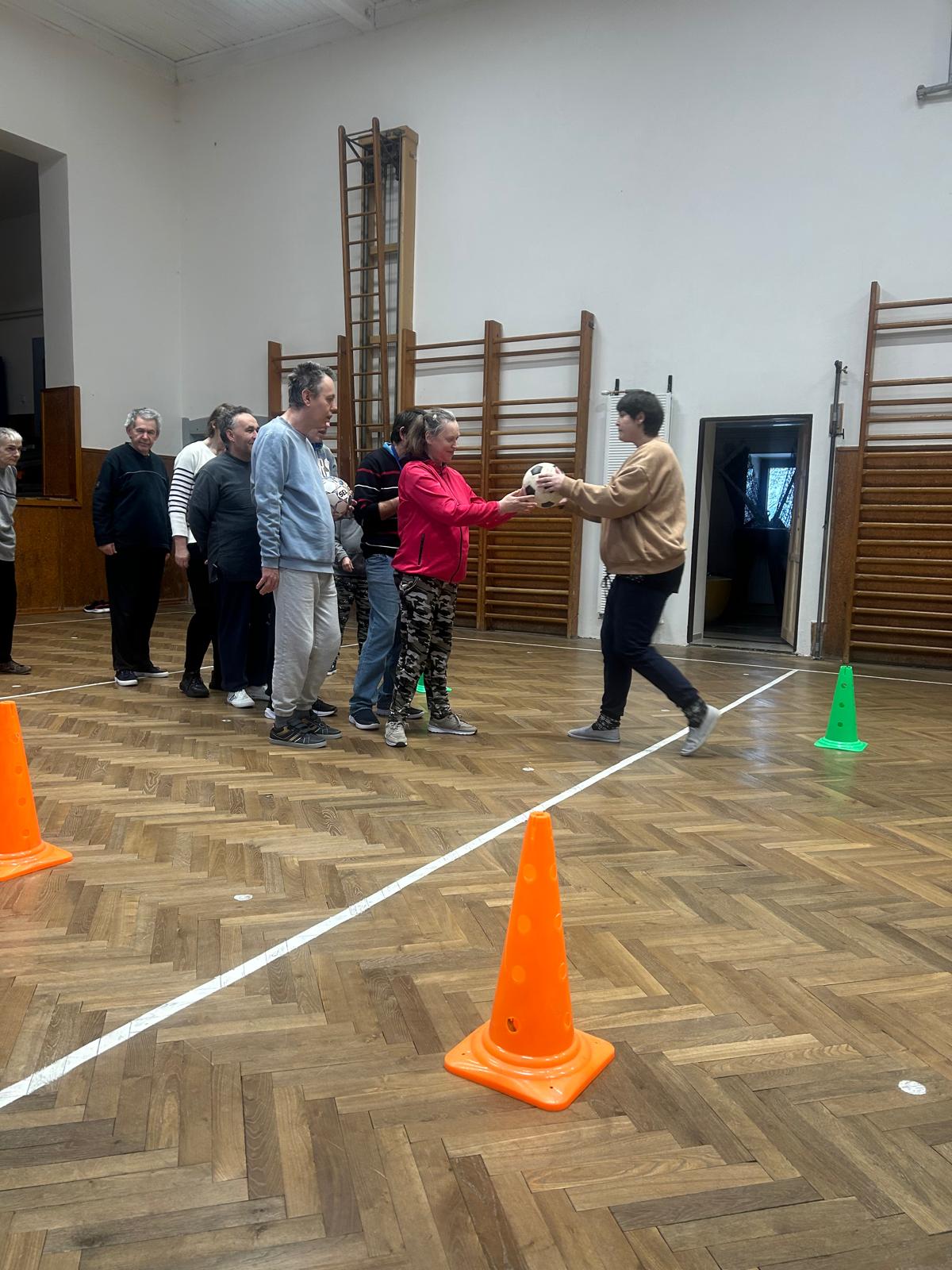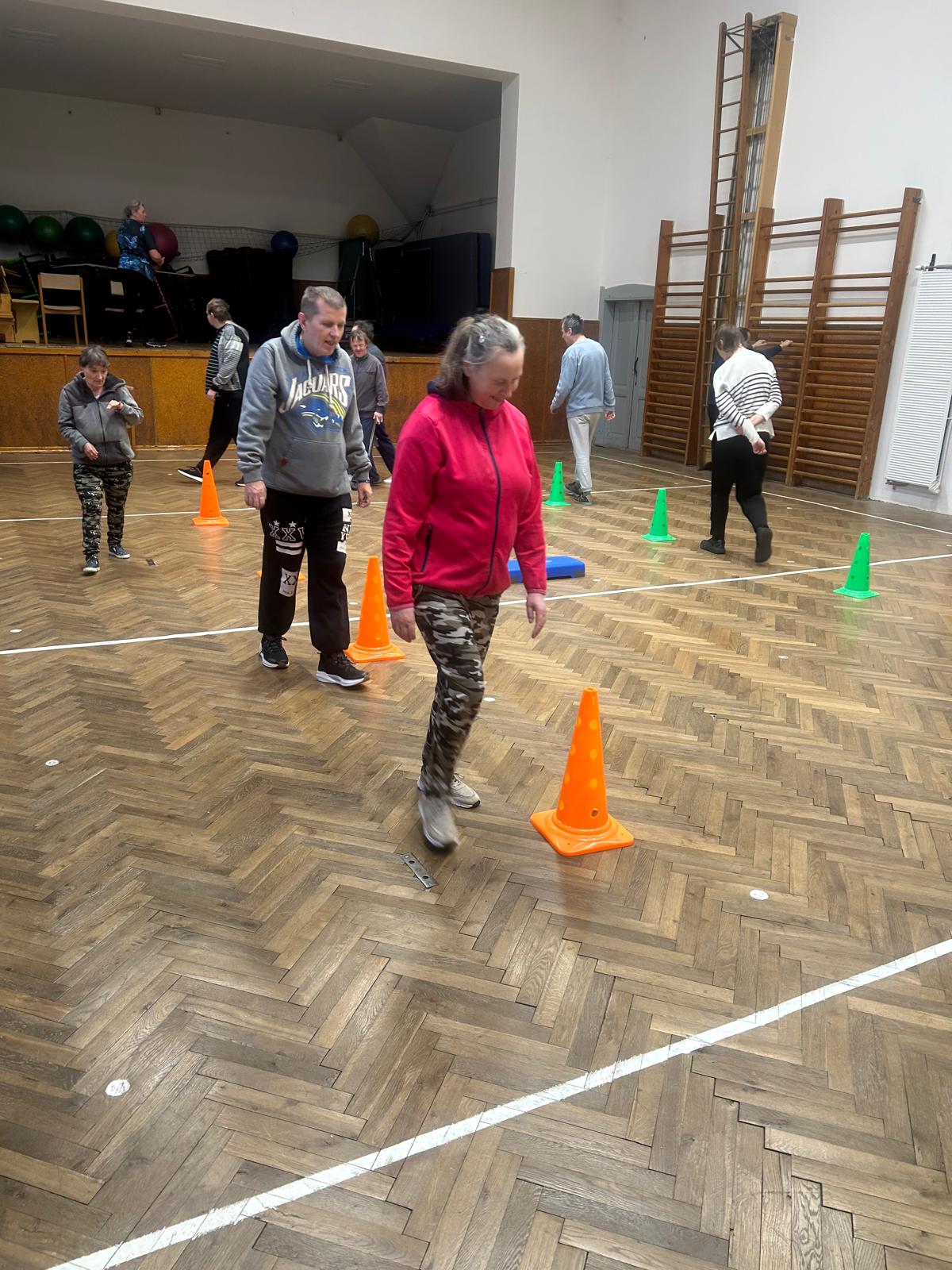 Pohybové hry v suchomastském Sokole pod vedením našich paní pečovatelek.