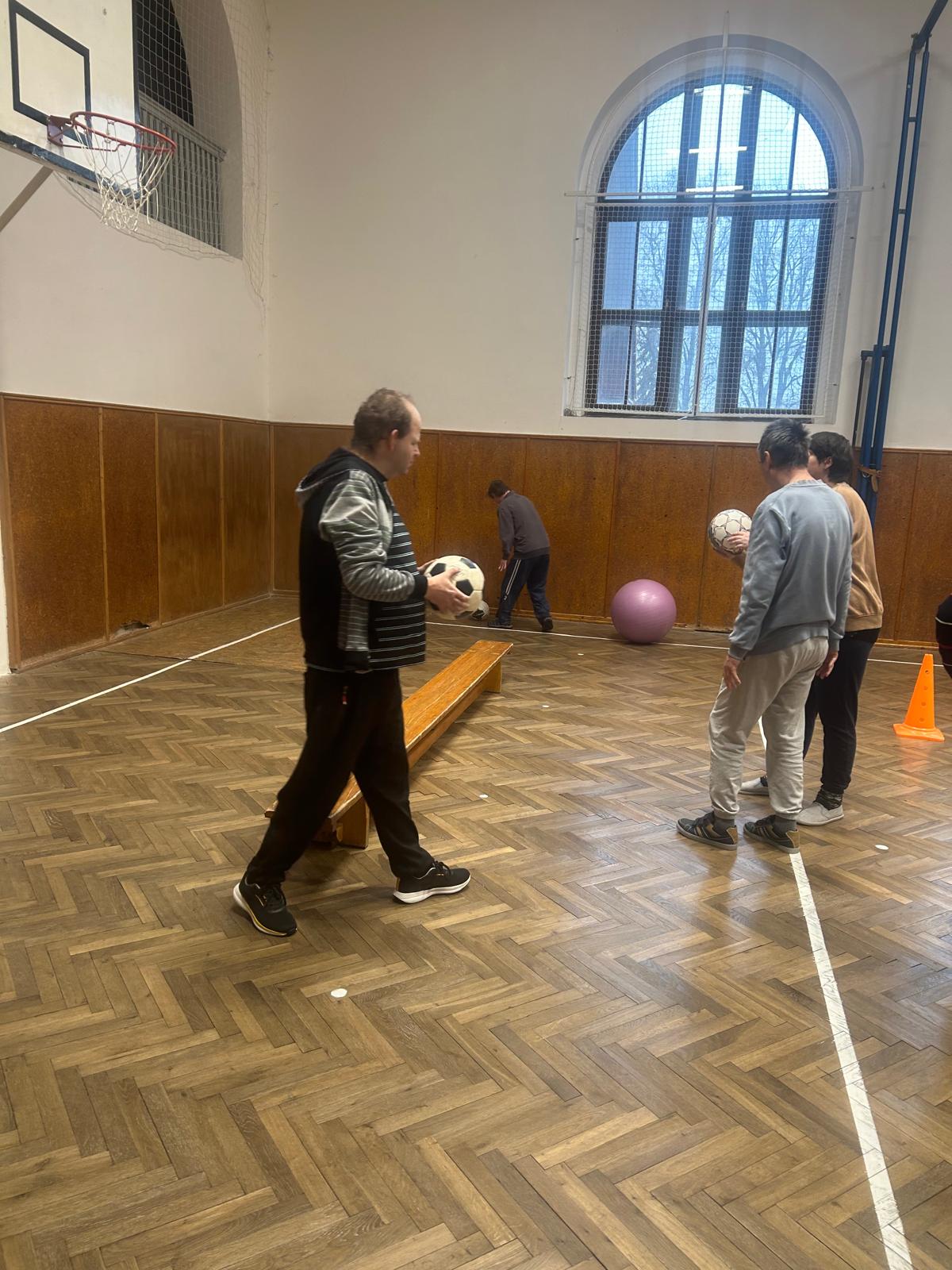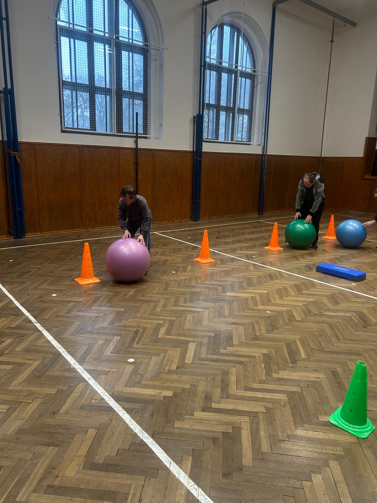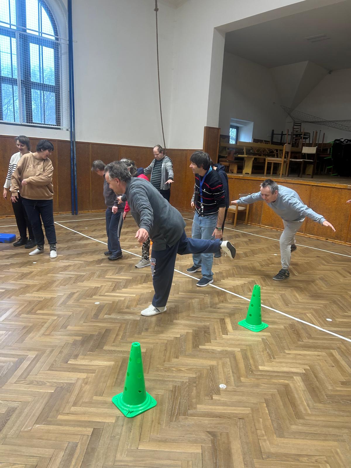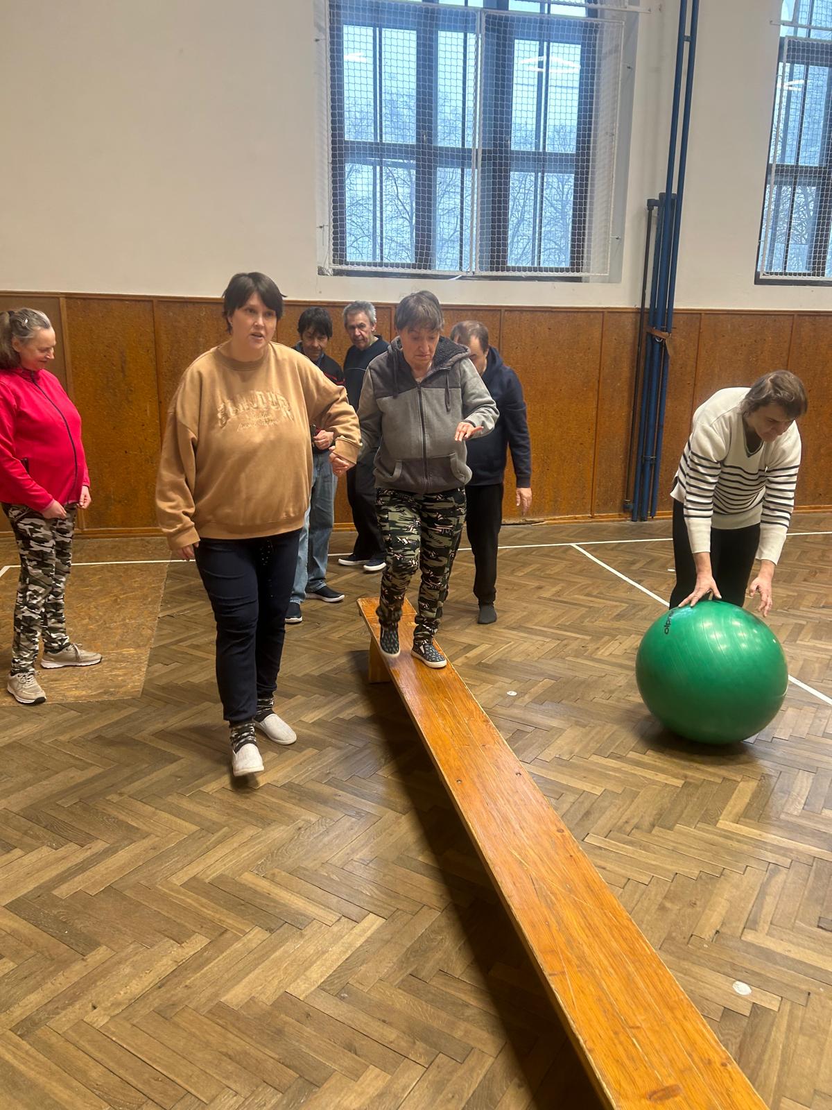Pohybové hry v suchomastském Sokole pod vedením našich paní pečovatelek.