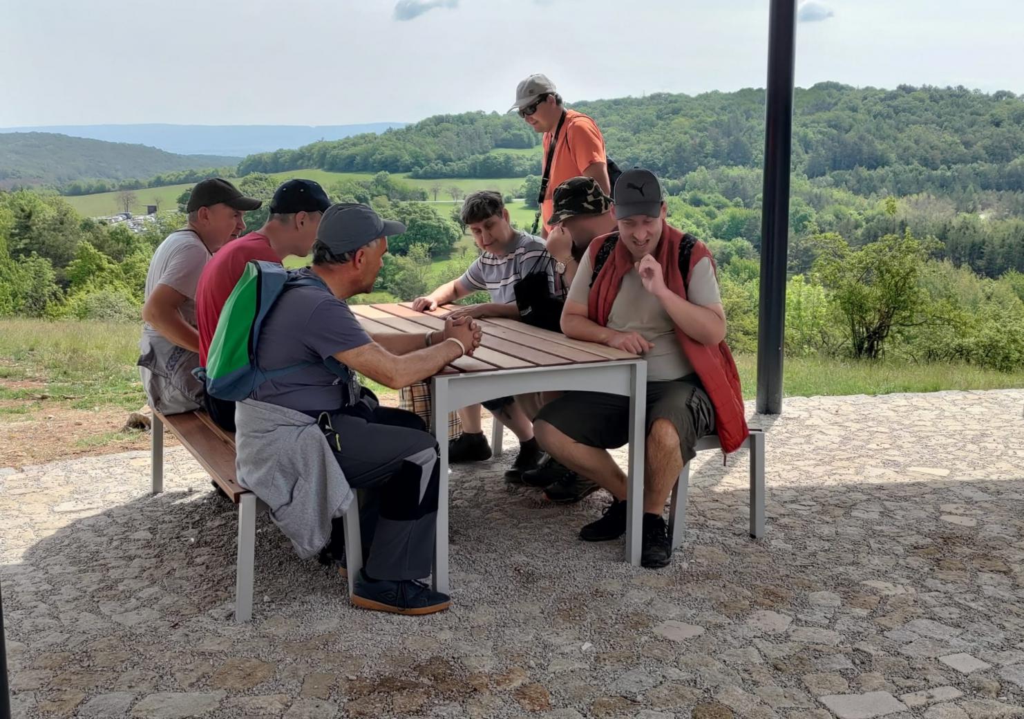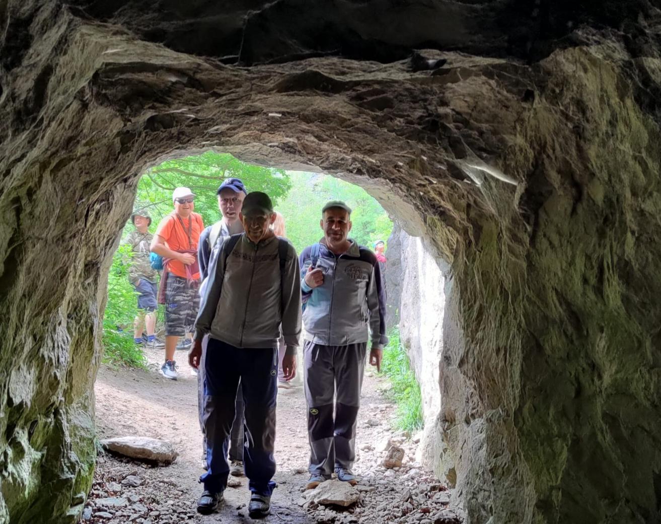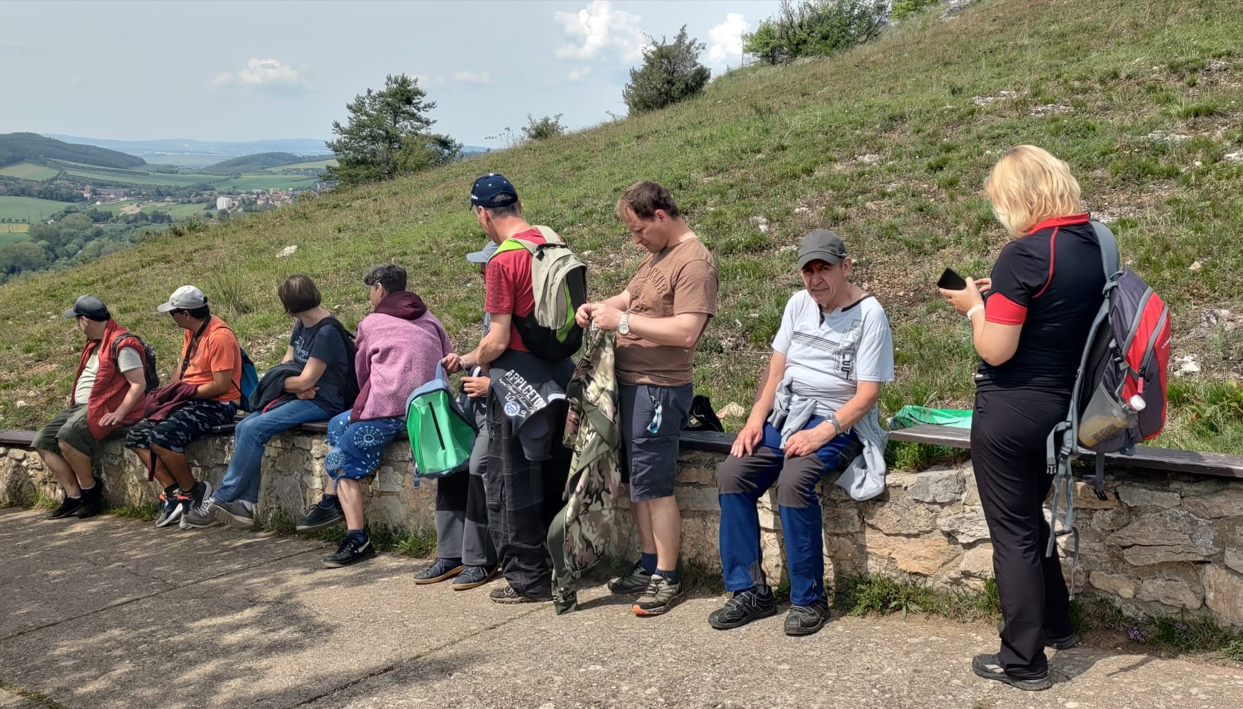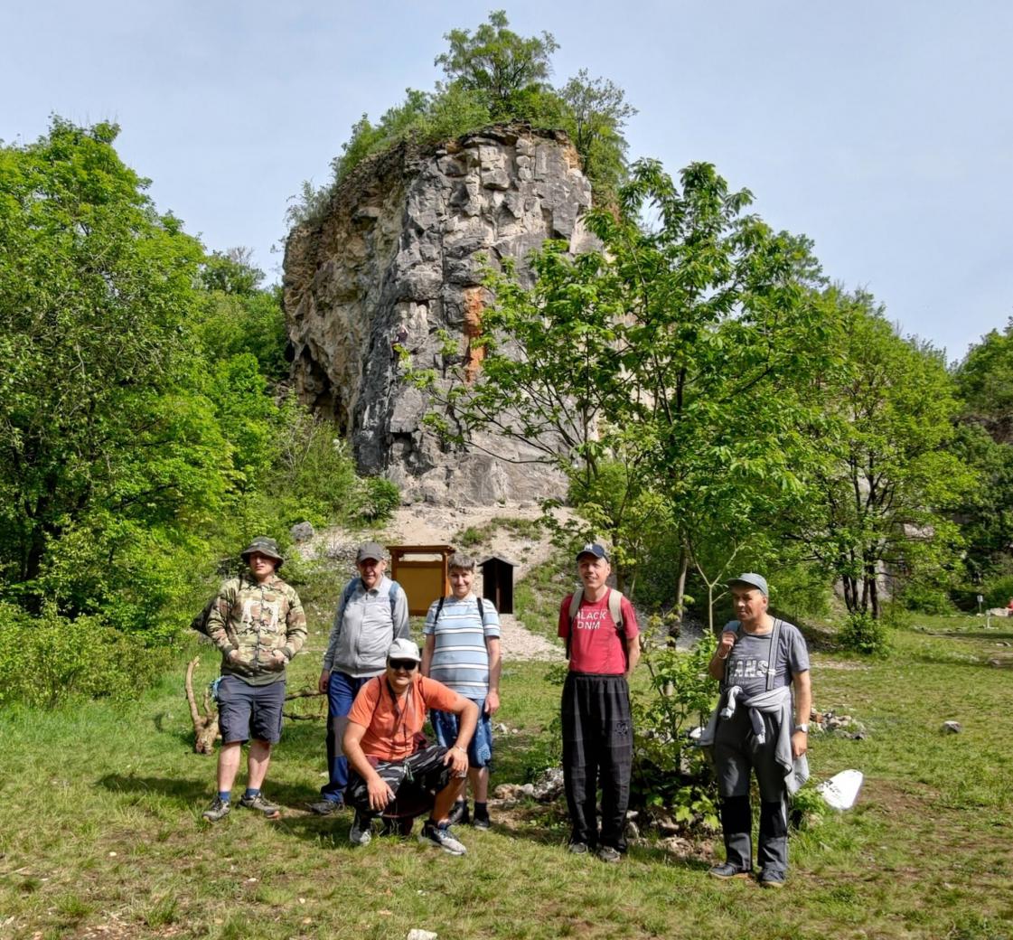 Druhou květnovou sobotu jsme měli ideální počasí. Polojasno, rtuť teploměru přes den vyšplhala maximálně na 22 °C, lehký vánek. Vyrazili jsme jako obvykle po snídani. Tentokrát jsme zvolili delší trasu, úplně mimo frekventovanou silnici. Polní cestou mezi loukami na Klouku jsme přišli k cestě do lomu Homolák. Pak už nás vedly jen úzké cestičky, místy i větší cesty, lesem na místo, kde býval před sto lety lom na těžbu narůžovělého vápence – lom Kobyla. Když jsme prošli tunelem, obklopily nás skály porostlé krásnými, ale i chráněnými rostlinami. Prostor na kterém jsme stáli byl rozlehlý, sem tam se povalovaly malé i větší kameny. Usadili jsme se okolo ohniště a občerstvili se. Sluníčko hřálo a my s obdivem pozorovali horolezce, kteří zdolávali vrchol jedné ze skal.