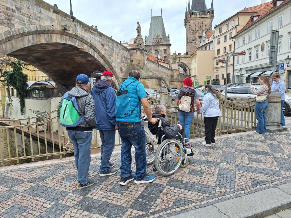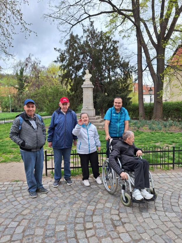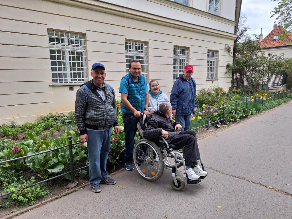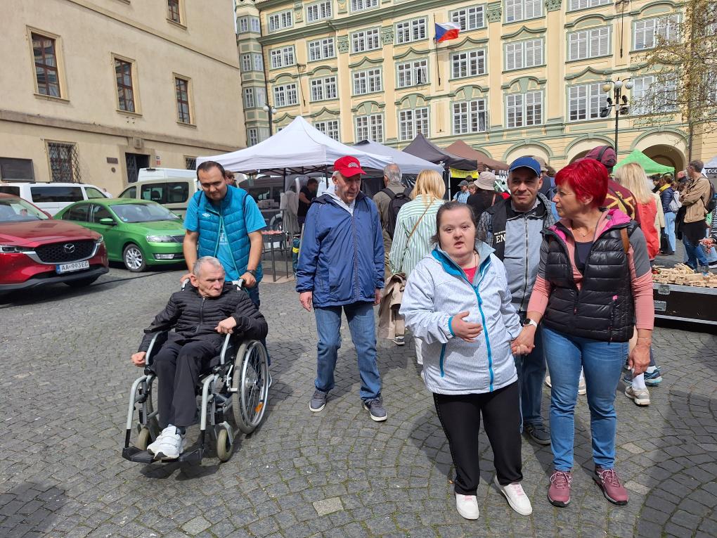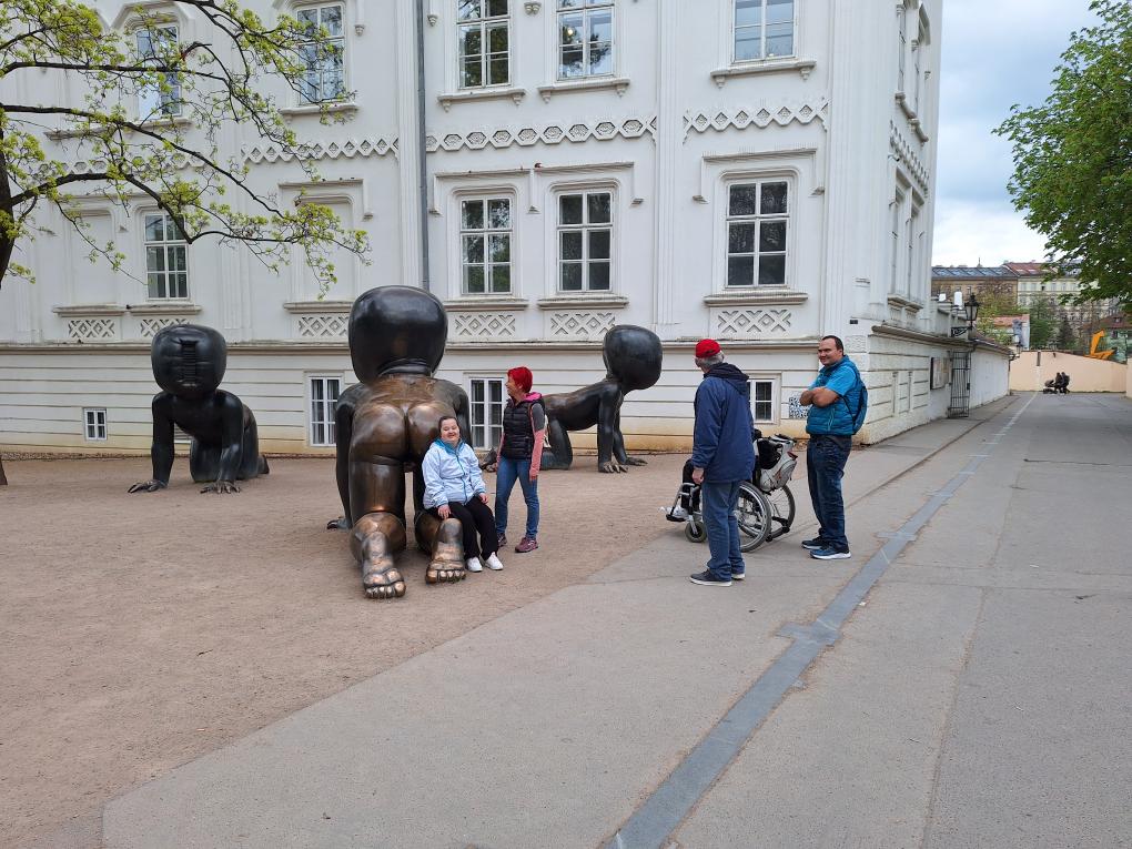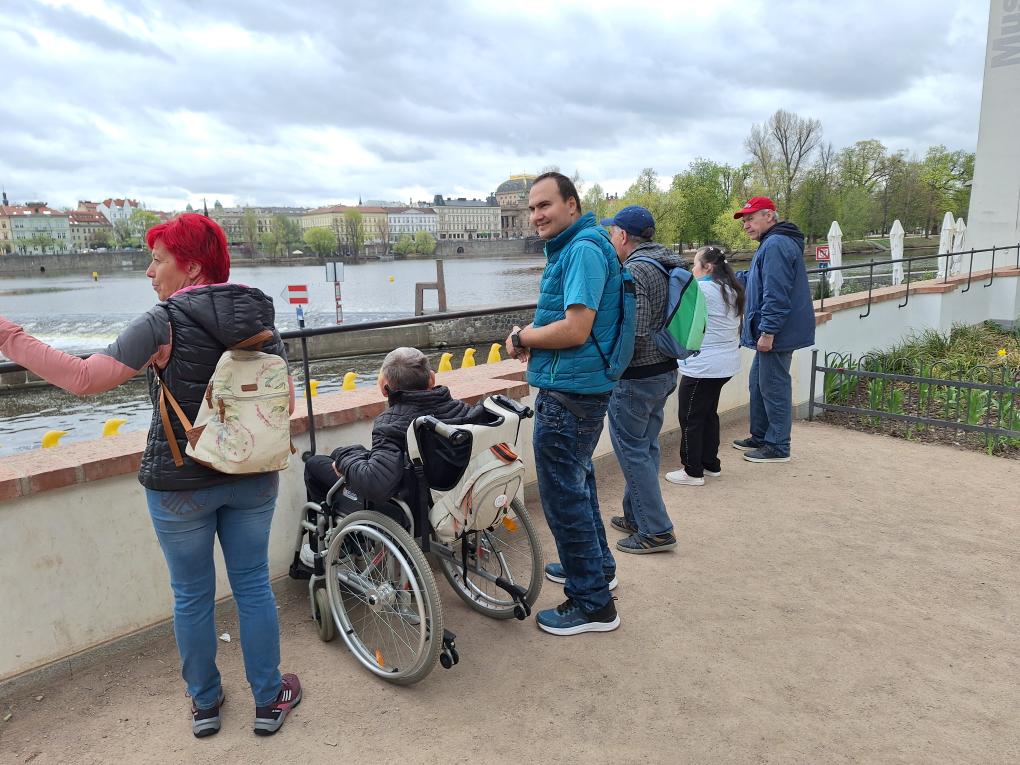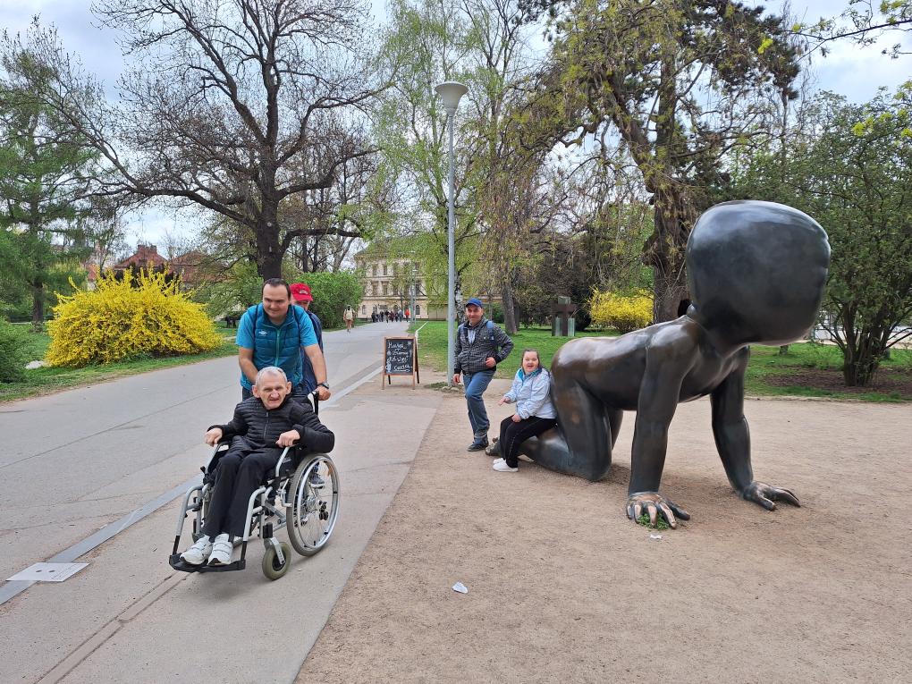 Vyrazili jsme jako obvykle veřejnou hromadnou dopravou. Autobus, vlak i tramvaj zvládáme dobře i s invalidním vozíkem. Ze Smíchovského nádraží jsme vyrazili po známé cestě přes Arbesovo náměstí, Újezd, kde jsme zavzpomínali na výlet na Petřín až na Kampu. Prošli jsme nádherně rozkvetlým parkem, u Sovových mlýnů jsme obdivovali sochy obřích bronzových batolat. Zvenčí jsme měli možnost zhlédnout vilu, kde žil a tvořil Jan Werich nebo Josef Dobrovský. Na mostě přes Čertovku jsme zavzpomínali na oblíbené postavičky Zelená a Modrá. Následovala prohlídka Muzea Karla Zemana. Z Karlova mostu byl nádherný výhled na lodě plující po Vltavě. V dáli bylo vidět Národní divadlo nebo Rudolfinum. Malostranskou mosteckou věží se znaky zemí Václava IV. jsme prošli až na Malostranské náměstí, kde probíhaly velikonoční trhy. Stánky nás lákaly nepřeberným množstvím výrobků.