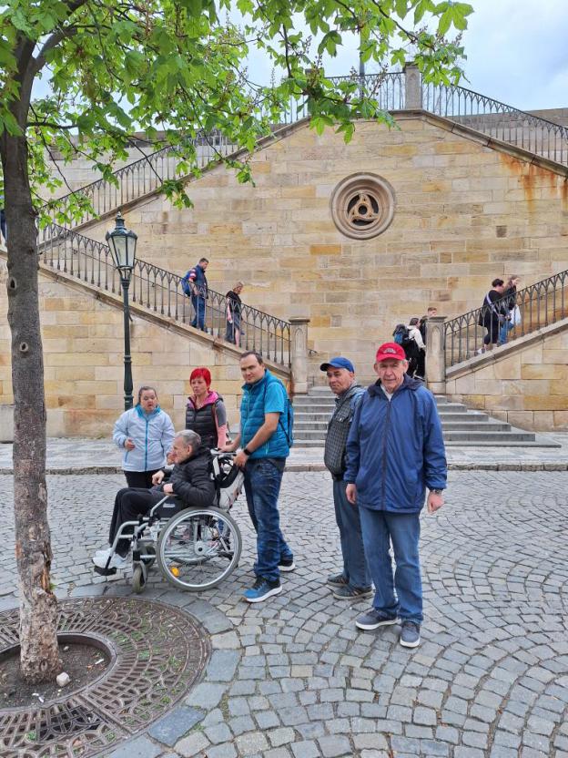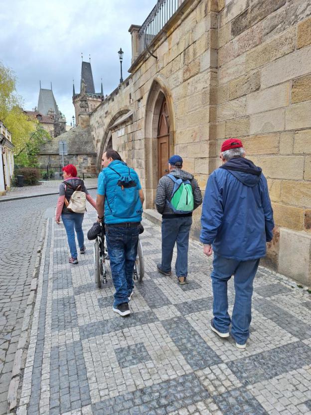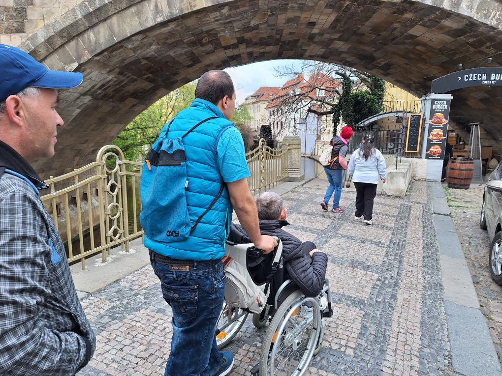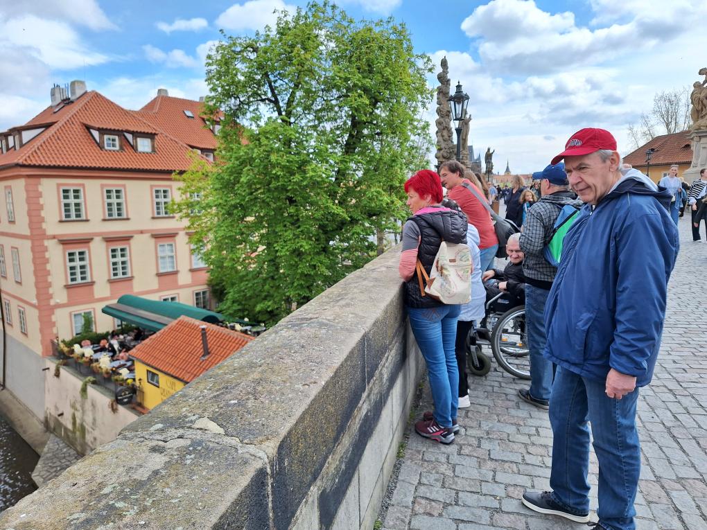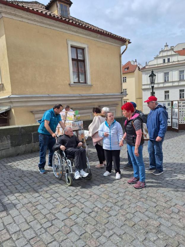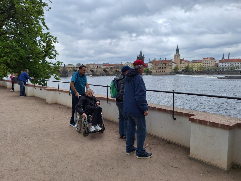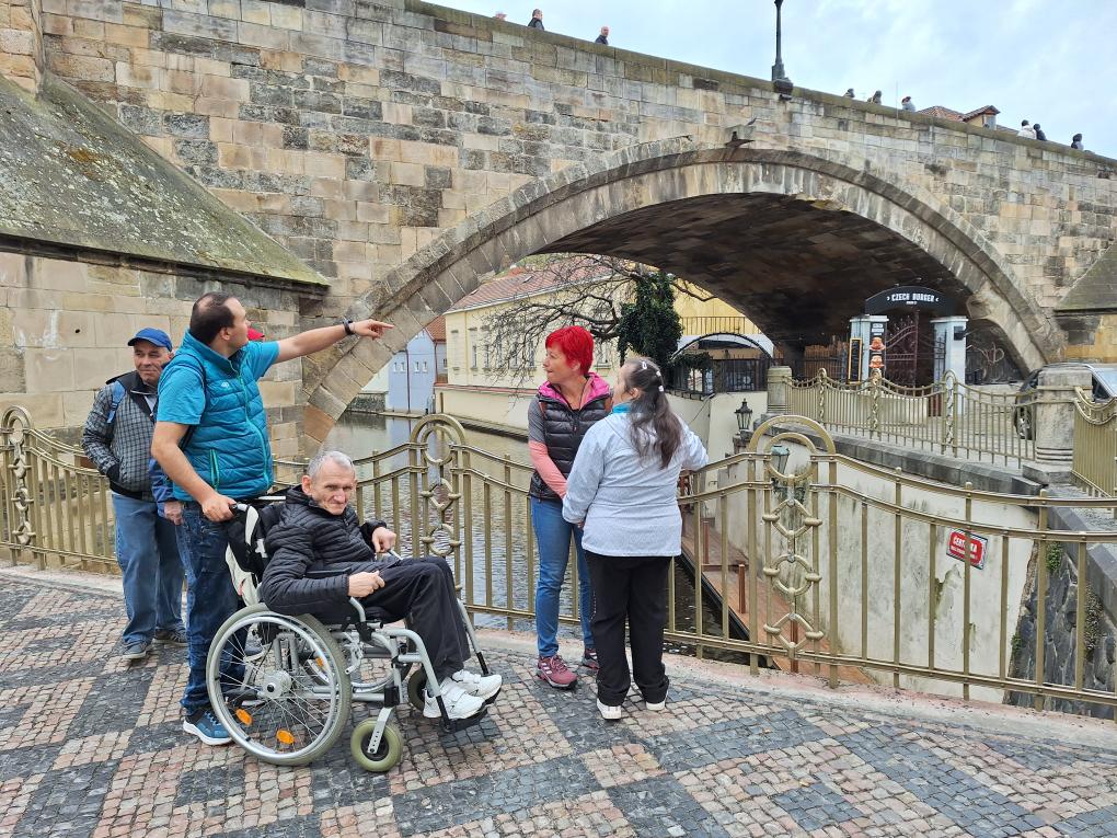 Vyrazili jsme jako obvykle veřejnou hromadnou dopravou. Autobus, vlak i tramvaj zvládáme dobře i s invalidním vozíkem. Ze Smíchovského nádraží jsme vyrazili po známé cestě přes Arbesovo náměstí, Újezd, kde jsme zavzpomínali na výlet na Petřín až na Kampu. Prošli jsme nádherně rozkvetlým parkem, u Sovových mlýnů jsme obdivovali sochy obřích bronzových batolat. Zvenčí jsme měli možnost zhlédnout vilu, kde žil a tvořil Jan Werich nebo Josef Dobrovský. Na mostě přes Čertovku jsme zavzpomínali na oblíbené postavičky Zelená a Modrá. Následovala prohlídka Muzea Karla Zemana. Z Karlova mostu byl nádherný výhled na lodě plující po Vltavě. V dáli bylo vidět Národní divadlo nebo Rudolfinum. Malostranskou mosteckou věží se znaky zemí Václava IV. jsme prošli až na Malostranské náměstí, kde probíhaly velikonoční trhy. Stánky nás lákaly nepřeberným množstvím výrobků.