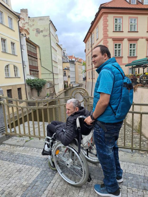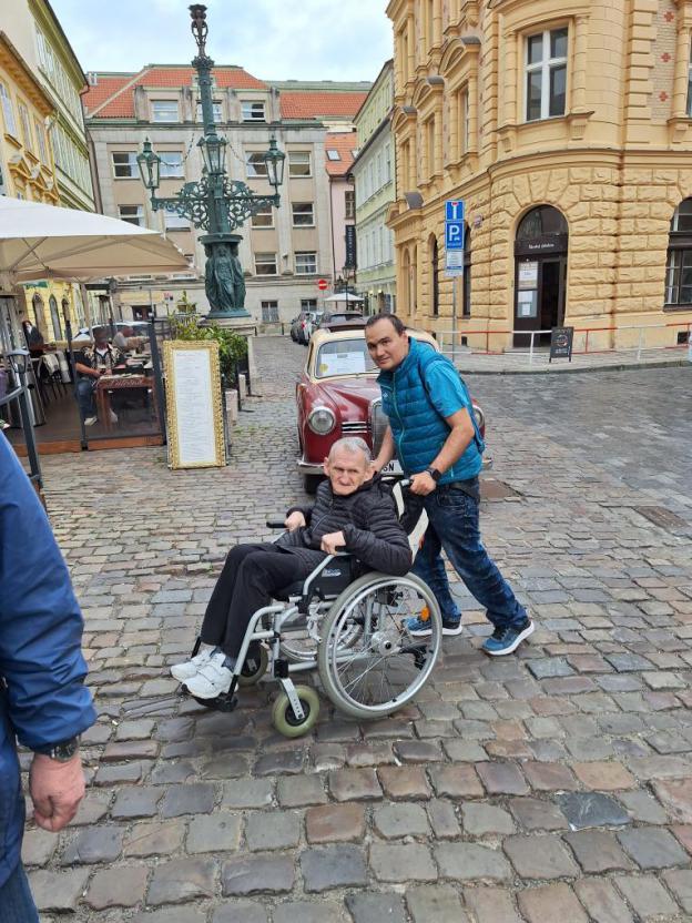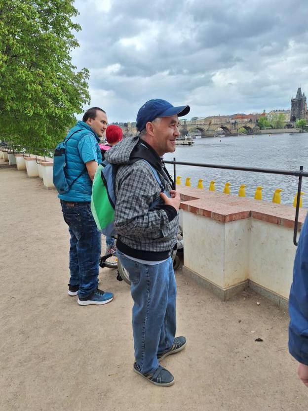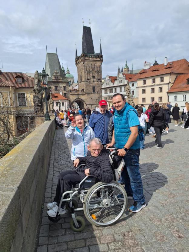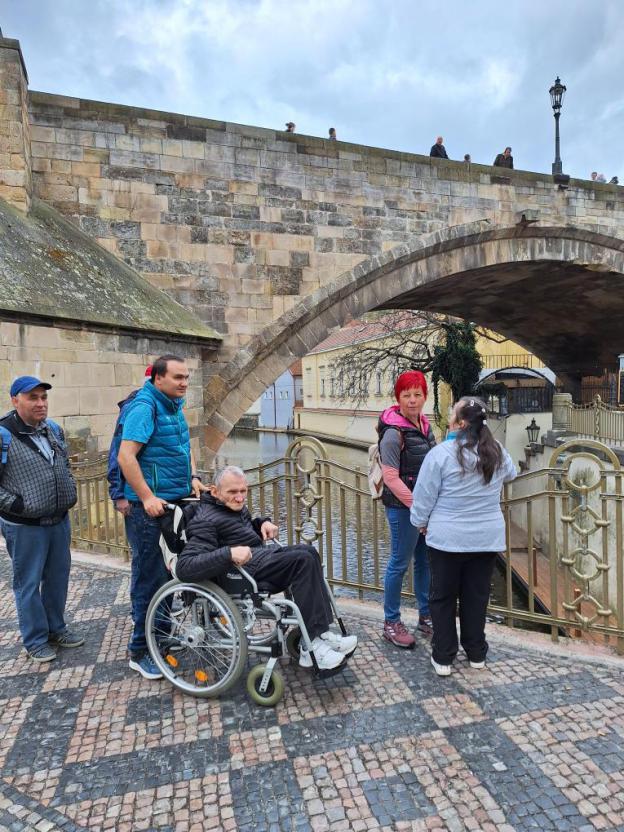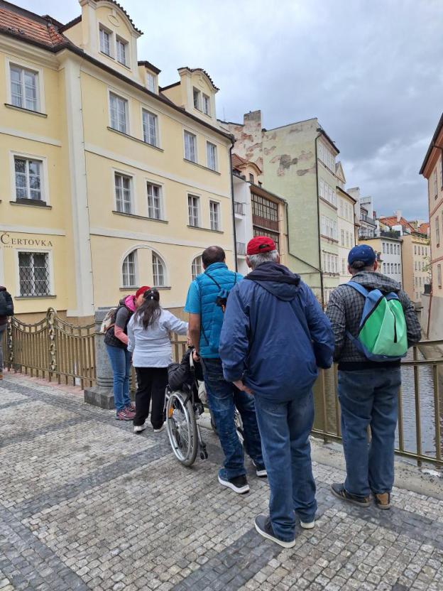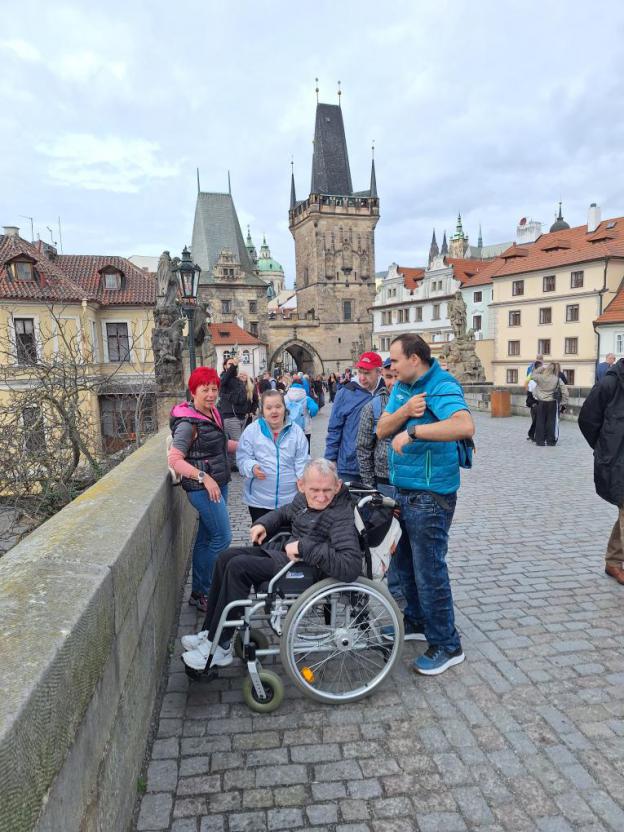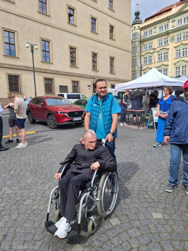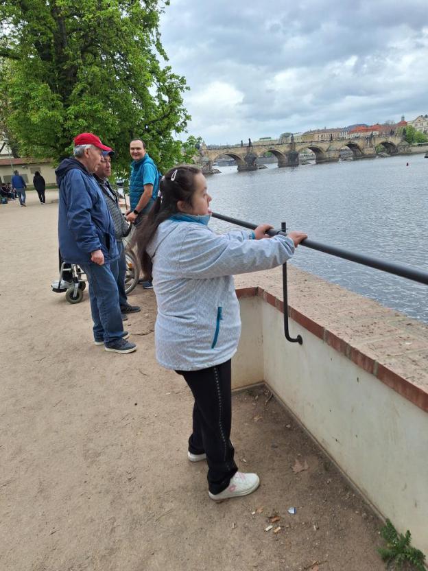 Vyrazili jsme jako obvykle veřejnou hromadnou dopravou. Autobus, vlak i tramvaj zvládáme dobře i s invalidním vozíkem. Ze Smíchovského nádraží jsme vyrazili po známé cestě přes Arbesovo náměstí, Újezd, kde jsme zavzpomínali na výlet na Petřín až na Kampu. Prošli jsme nádherně rozkvetlým parkem, u Sovových mlýnů jsme obdivovali sochy obřích bronzových batolat. Zvenčí jsme měli možnost zhlédnout vilu, kde žil a tvořil Jan Werich nebo Josef Dobrovský. Na mostě přes Čertovku jsme zavzpomínali na oblíbené postavičky Zelená a Modrá. Následovala prohlídka Muzea Karla Zemana. Z Karlova mostu byl nádherný výhled na lodě plující po Vltavě. V dáli bylo vidět Národní divadlo nebo Rudolfinum. Malostranskou mosteckou věží se znaky zemí Václava IV. jsme prošli až na Malostranské náměstí, kde probíhaly velikonoční trhy. Stánky nás lákaly nepřeberným množstvím výrobků.